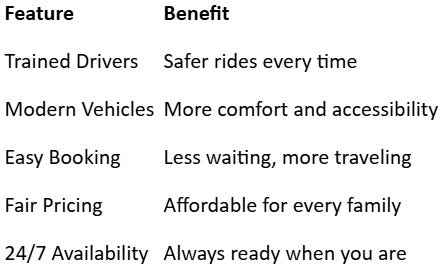 Our drivers are more than professionals—they’re companions. They understand that kindness makes a difference. Moreover, with smiles and gentle support, they make every passenger feel respected. We take time to listen, assist, and care. Also, we believe every trip should feel personal and pleasant. Our team is trained to ensure every rider feels safe, heard, and valued.
